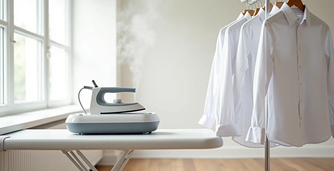 Pour un cadre supérieur, une chemise n’est pas un simple vêtement. C’est la première impression, le support de l’autorité, la signature visible de l’exigence. Une chemise impeccable, sans un pli disgracieux, n’est pas une option ; c’est la norme. Pourtant, derrière ce résultat se cache une réalité souvent négligée : la corvée du repassage. Déléguer cette tâche à une aide-ménagère est la solution évidente, mais le véritable enjeu est ailleurs. Nous confions des chemises de grande valeur, coupées dans des cotons d’Égypte ou des lins précieux, à un équipement souvent inadapté : le fer à repasser classique.