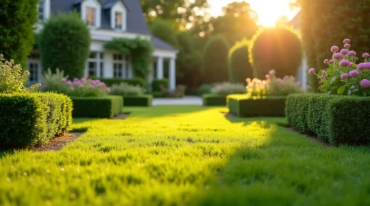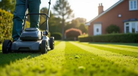 Une pelouse anglaise ne s’obtient pas par hasard : elle résulte d’une régularité professionnelle. La fréquence de tonte idéale varie selon la saison et le type de gazon, mais généralement une tonte hebdomadaire au printemps garantit densité et uniformité. Le mulching, technique consistant à laisser l’herbe finement coupée sur place, nourrit naturellement le sol et réduit les besoins en engrais.